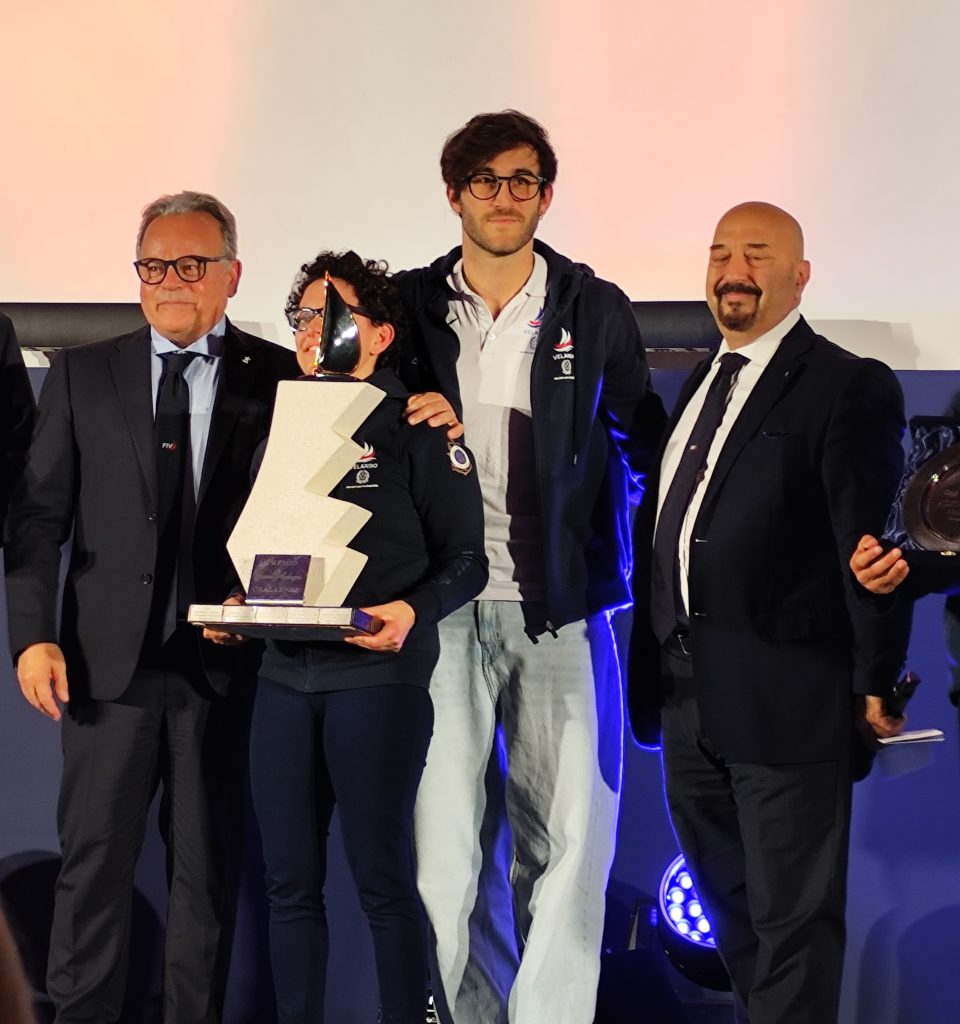La serata ha riservato un’ulteriore emozione con l’assegnazione ad Alice Liguori e Giuseppe D’Amato del prestigioso Trofeo “Gianni Modugno”. Il premio consegnato dal Vice Presidente FIV Giuseppe D’Amico, assume un valore particolare alla luce della presenza di finalisti provenienti da circoli storici e altamente competitivi della regione. La motivazione, densa di significato, ha sottolineato come la loro impresa rappresenti “un risultato che abbatte ogni barriera”, capace di portare la vela paralimpica pugliese ai vertici nazionali e di dimostrare che il talento può affermarsi oltre ogni ostacolo, unendo eccellenza tecnica, visione e carattere.